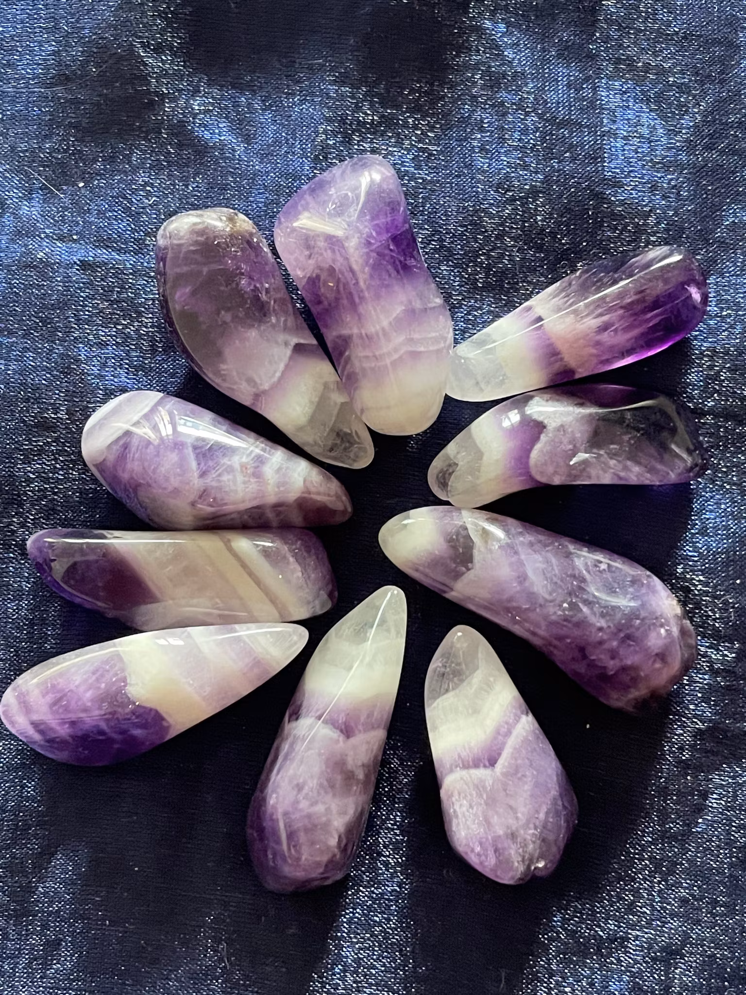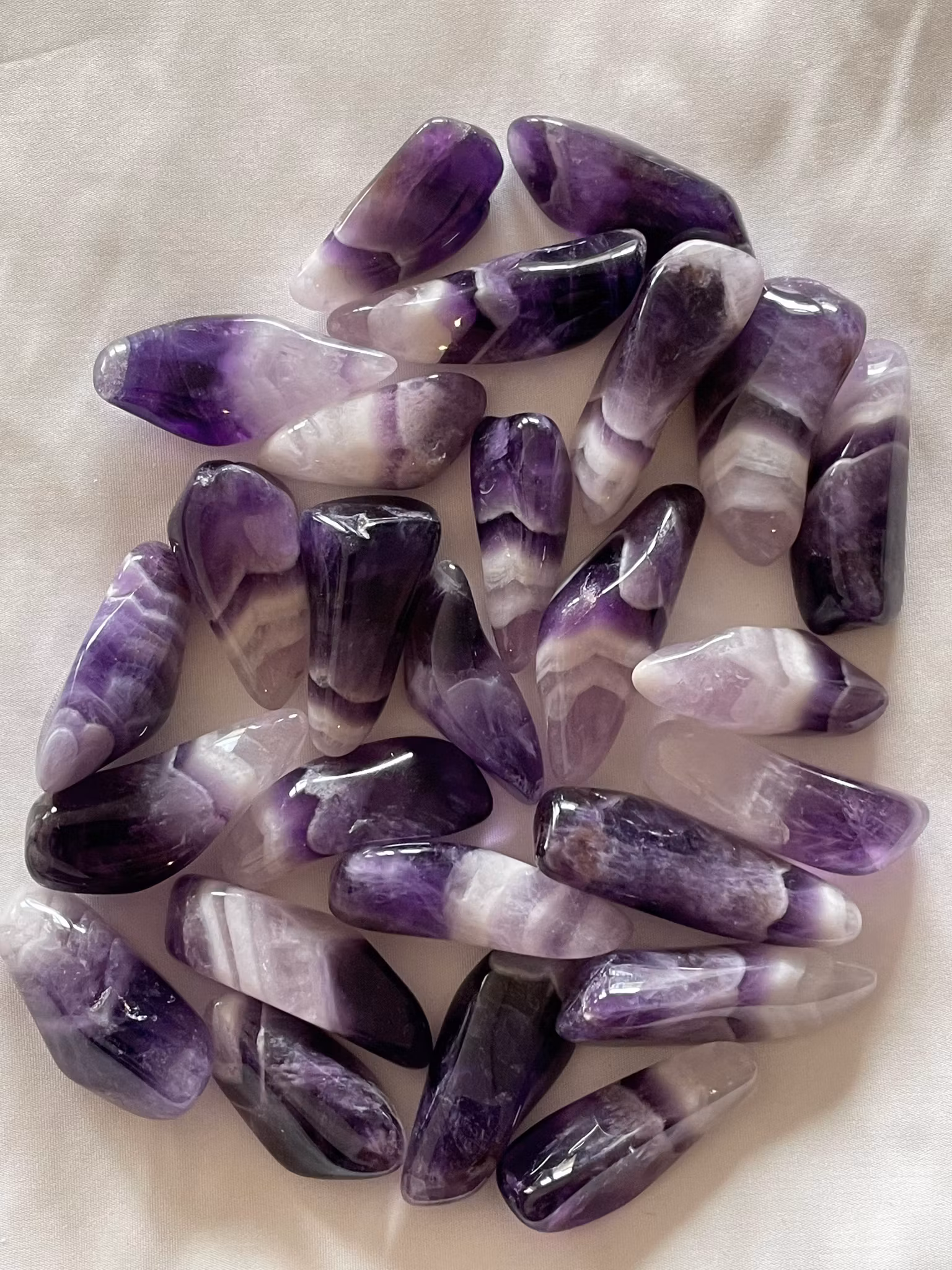 Band Ametist även kallad Drömametist. De är ca 3,5 cm långa och väger ca 8-10gram. Säljes styckevis.
