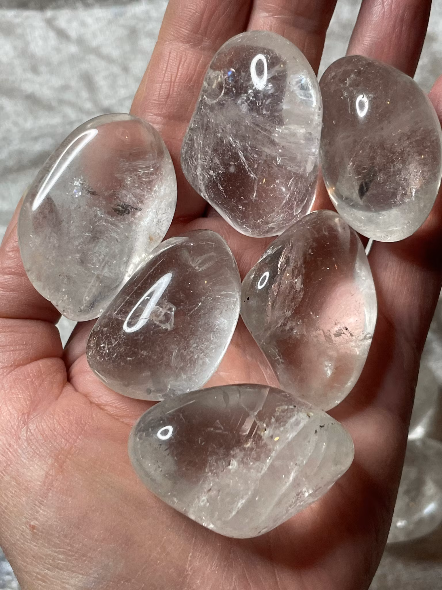 Stora (XL) fina, trumlade Bergkristaller. Säljes styckevis.