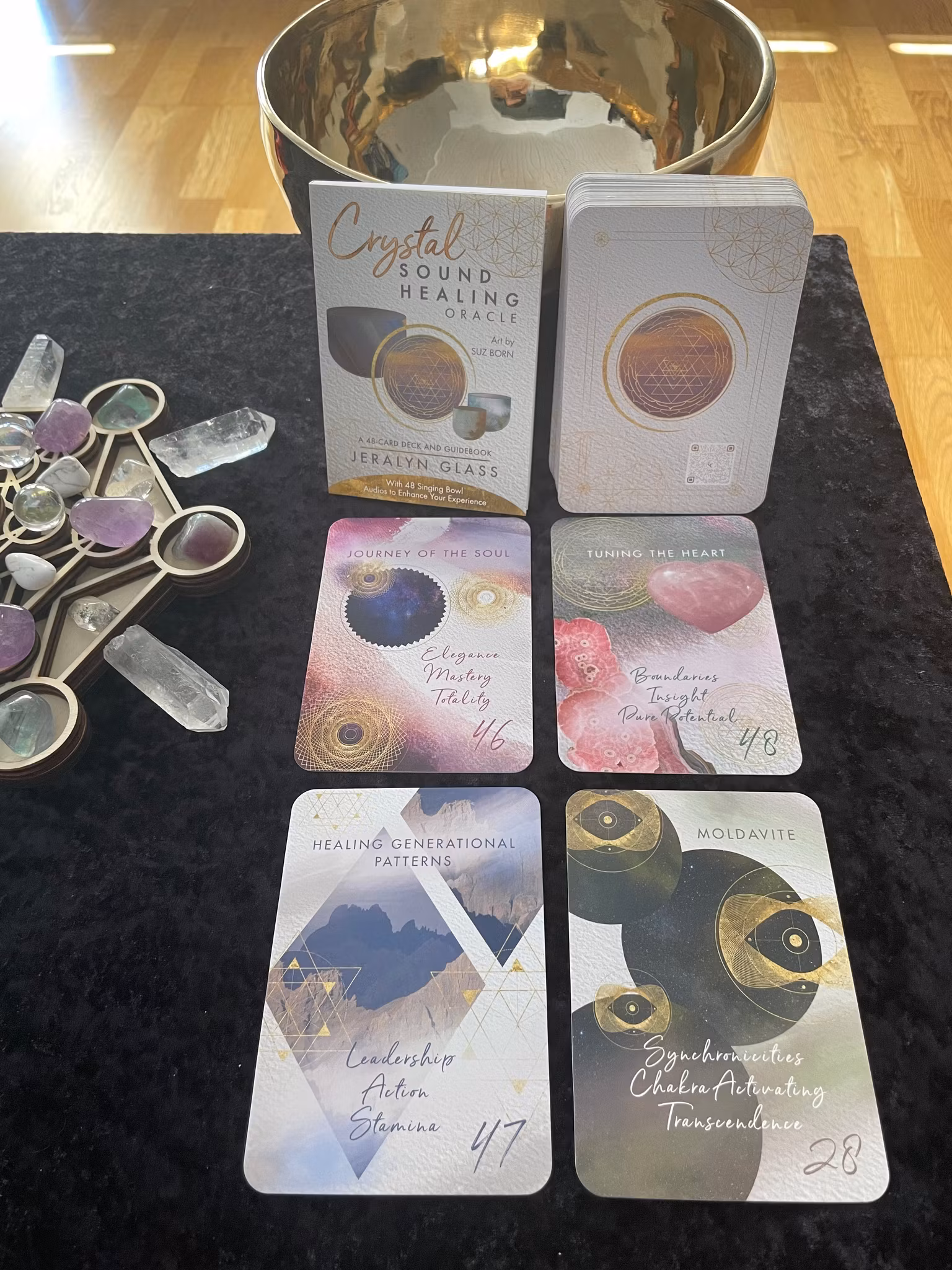 Den första orakelkortleken i sitt slag, Crystal Sound Healing Oracle 🎶. Leken fokuserar på kristallalkemi och klangskålar och hjälper användaren att integrera läkande ljudvibrationer i sitt dagliga liv. (engelsk text)