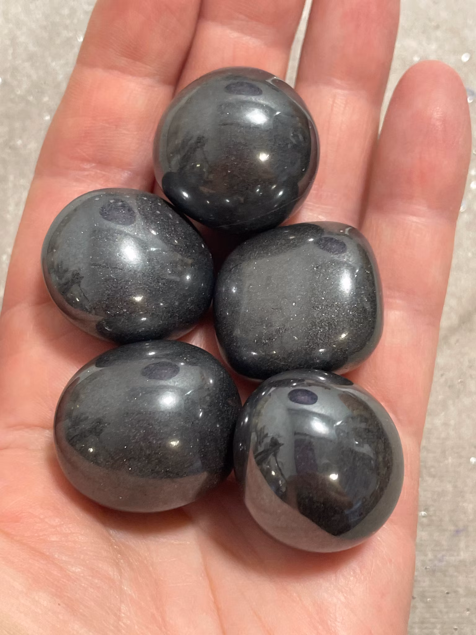 Egenskaper som det sägs att Hematiten har: Den hjälper till att absorbera negativ energi och lugnar vid stressiga situationer. Är mycket beskyddande och grundande. Mycket bra att ha vid arbete med Bas chakrat, hjälper till att transformera negativa energier till mera positiva vibrationer.