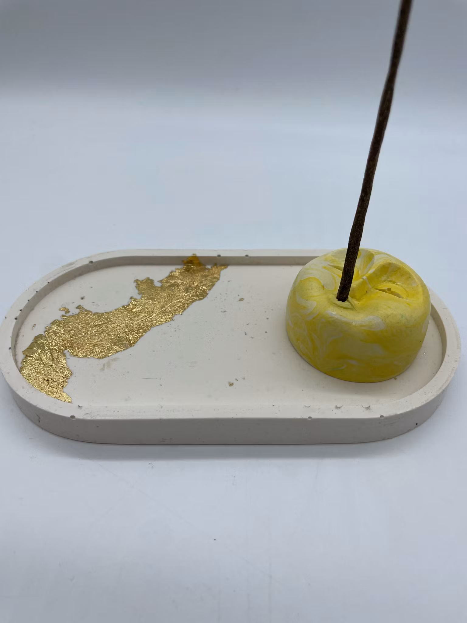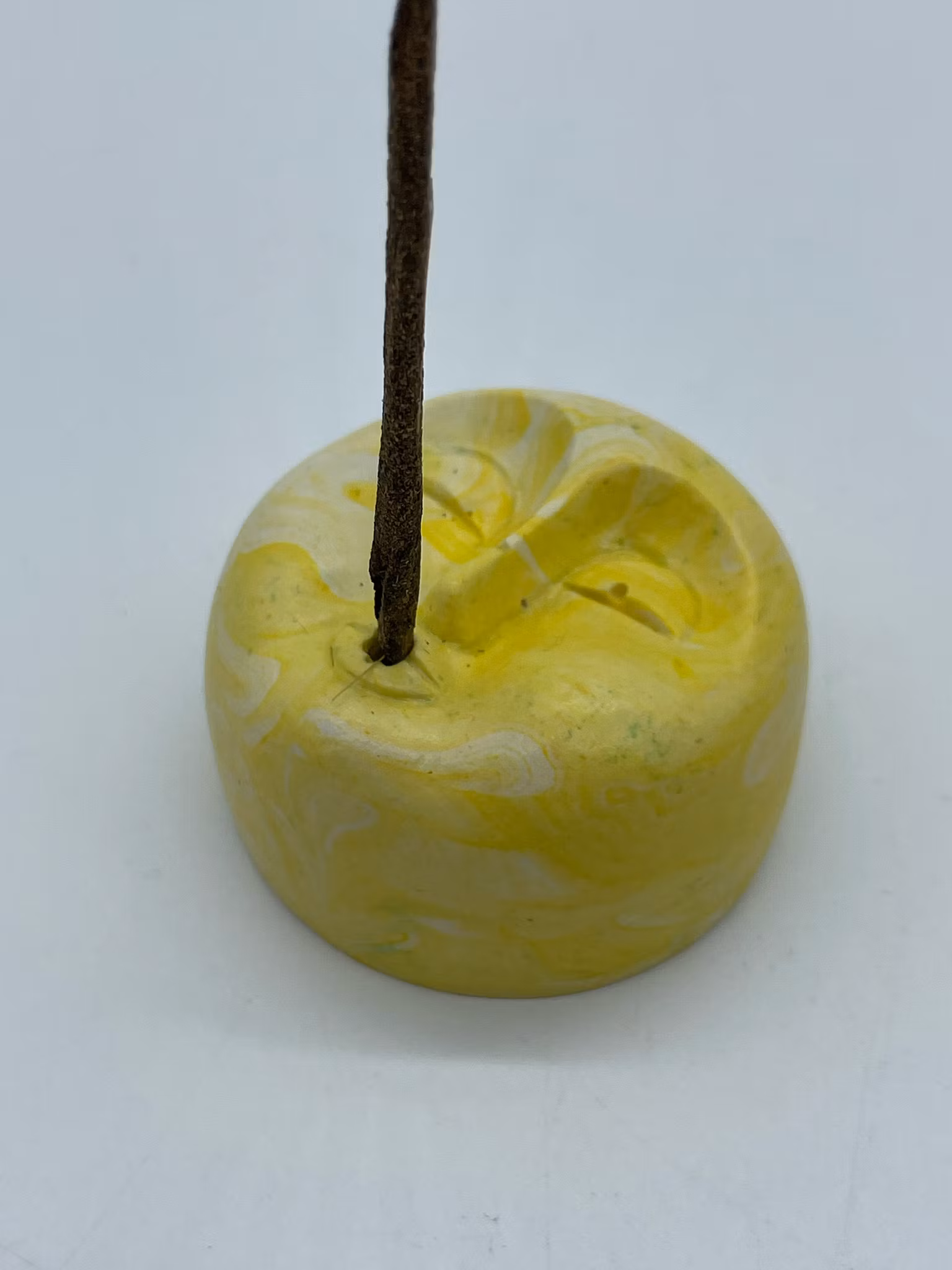 Ansikte (gulmarmorerad) som rökelsehållare. Det är den du ser på bilden som du får när du köper.