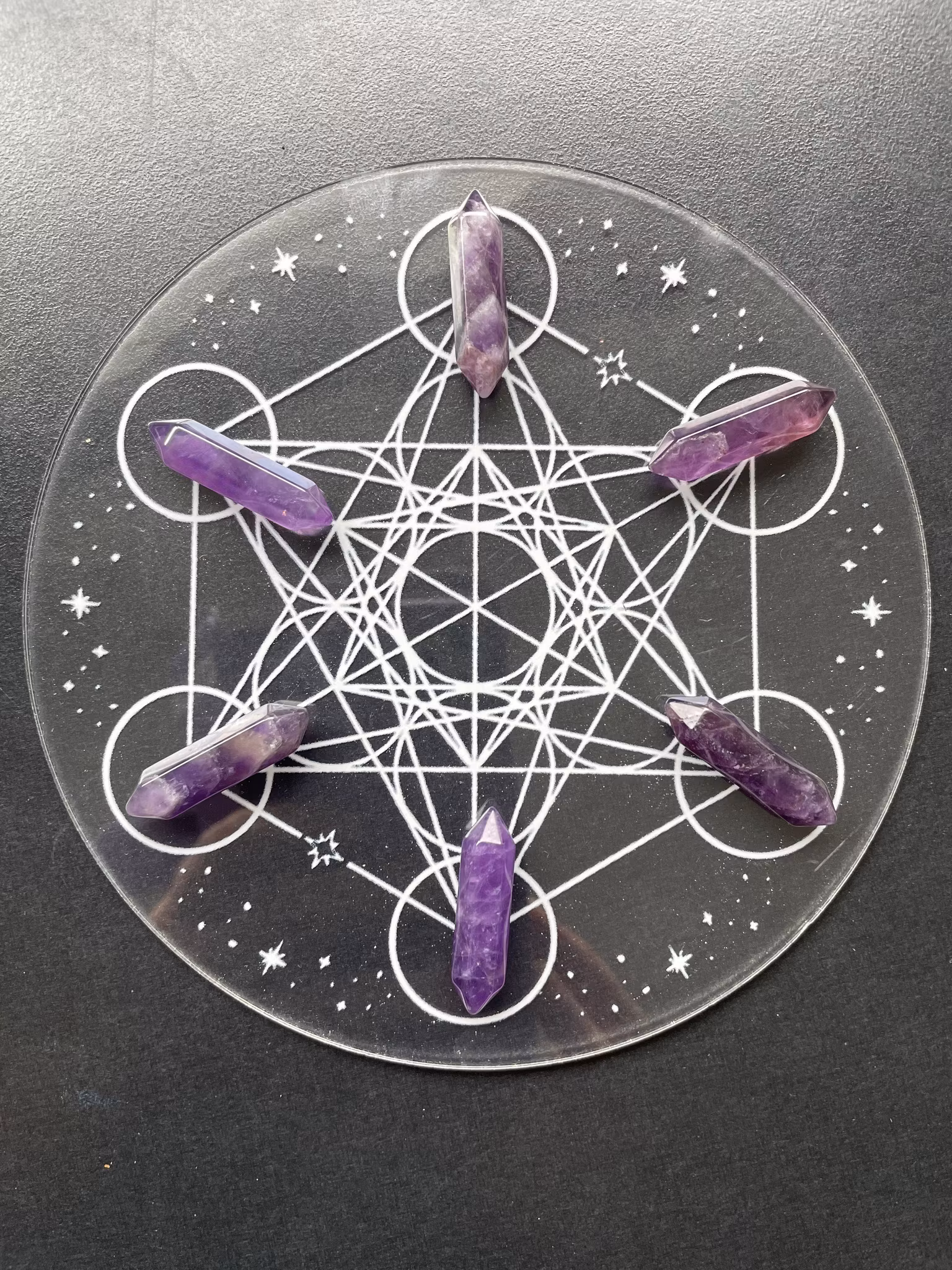 Metatrons symbol. 15cm i diameter och skuren i plast. Perfekt för att göra Kristallnät på. Kristallerna ingår ej.