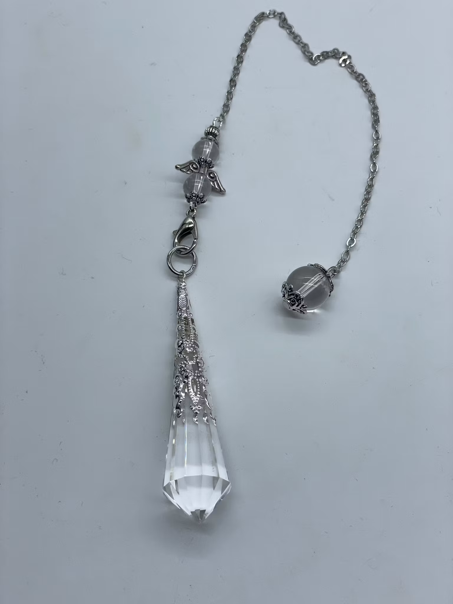 En pendel är ett verktyg som du kan använda ihop med en pendelmatta eller bestämma att om den snurrar medsols är det ett Ja och motsols är ett Nej, när den går fram och tillbaka kan det vara Vet Ej och när den inte rör sig alls så vill den/du inte svara. Svaren kommer från din egen intuition. Har du inte förtroende för din intuition/magkänsla bör du ta svaren med en nypa salt. Och är du en orolig själ så skulle jag undvika att ställa ja och nej frågor.