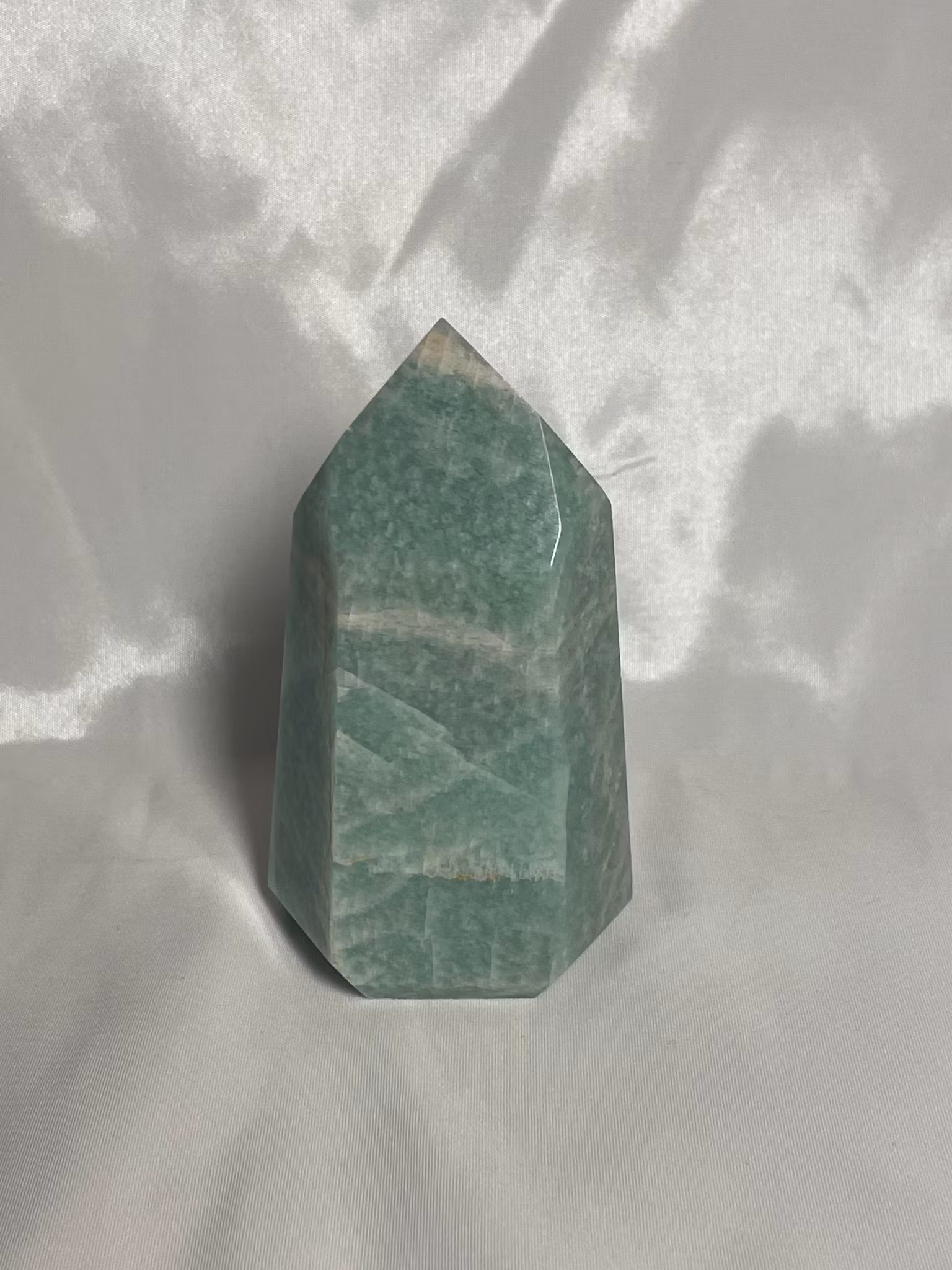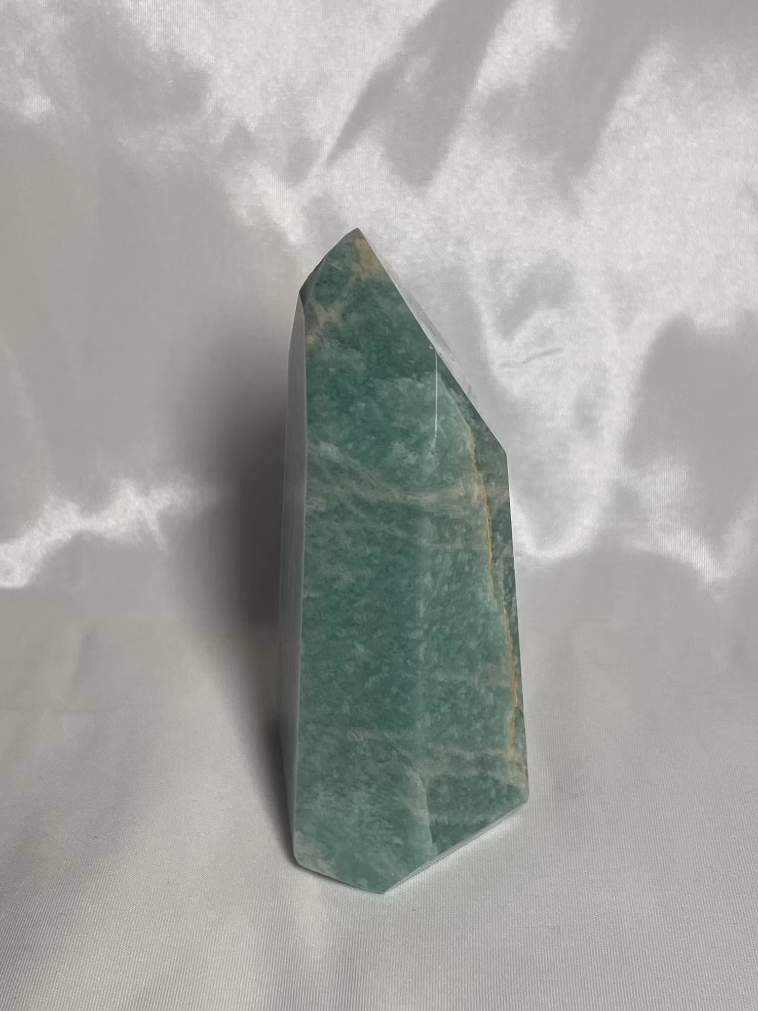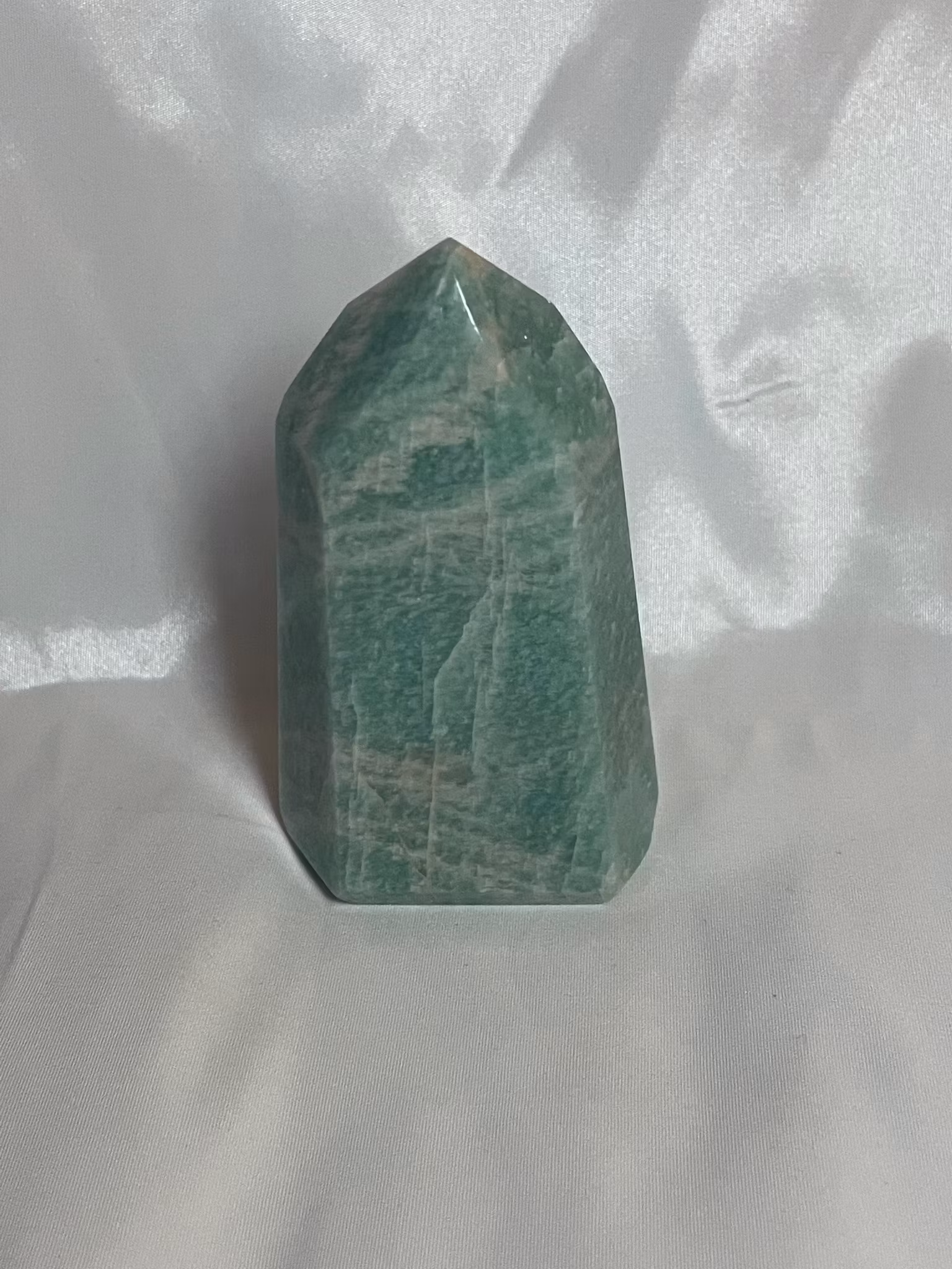 Fint Torn i Amazonit med måtten 7,7cm hög och ca 4,5*3cm i basen. Den väger 132gram.